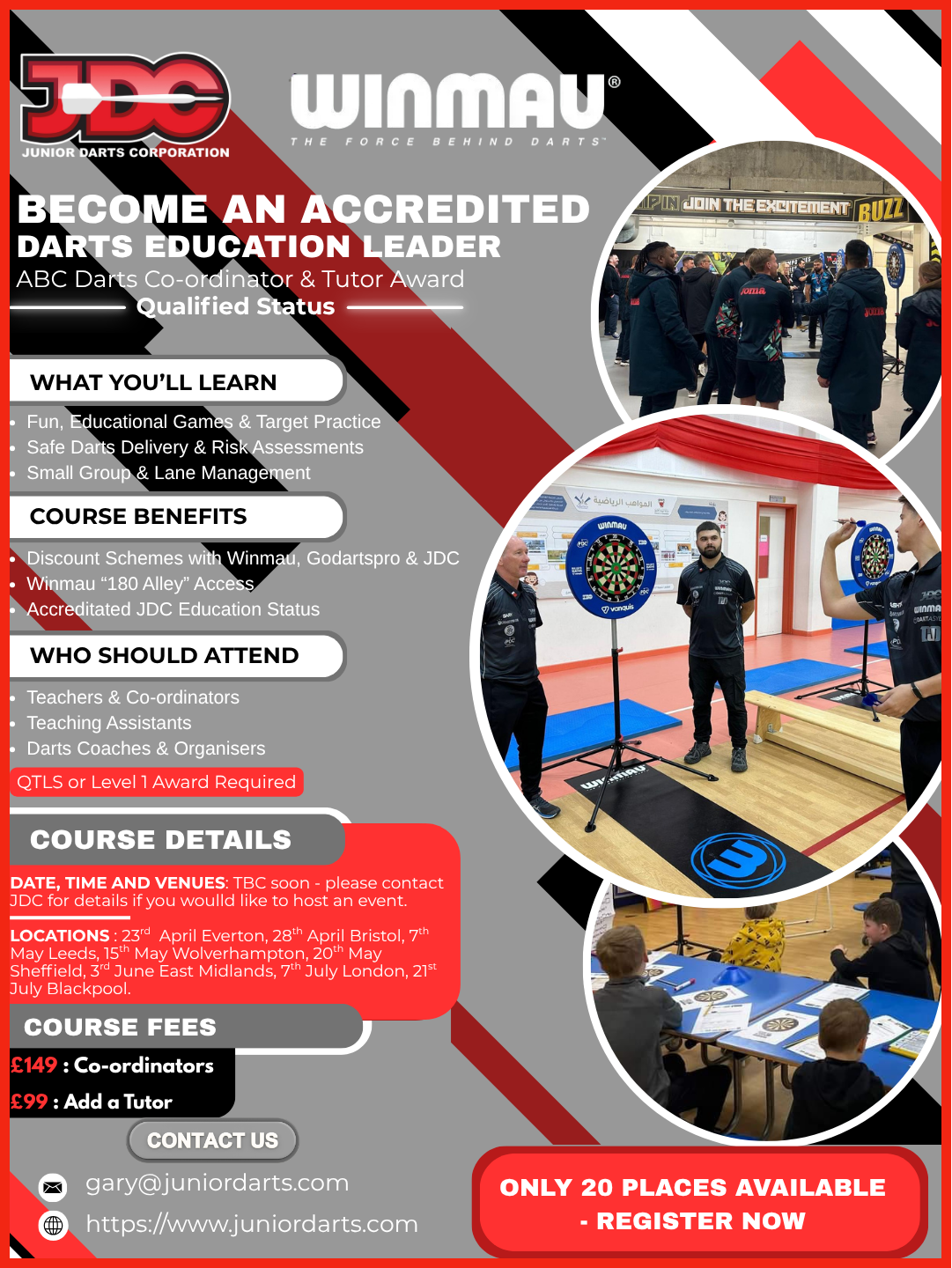 Please email education@winmau.com or contact Gary Horsley on gary@juniordarts.com for more information on the course content or delivery.